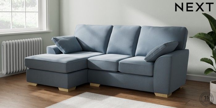 7.2.10 Buy Stamford Small Sofa Chaise - Left Hand Relaxed Linen Look Mid Blue Large Square Angle - Light from the Seasons online shop Click here to use our website with more accessibility support, for example screen readers
