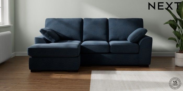 7.2.10 Buy Stamford Small Sofa Chaise - Left Hand Ripple Chenille Dark Blue Large Square Angle - Dark from the Seasons online shop Click here to use our website with more accessibility support, for example screen readers