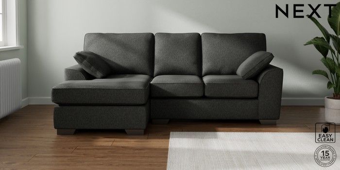 7.3.1 Buy Stamford Small Sofa Chaise - Left Hand Tweedy Blend Easy Clean Charcoal Grey Large Square Angle - Gunmetal from the Seasons online shop Click here to use our website with more accessibility support, for example screen readers
