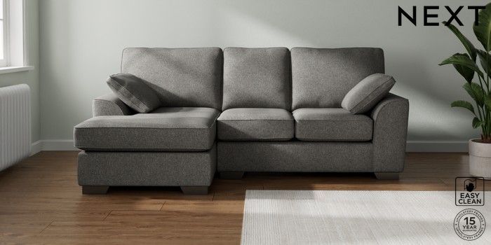 7.3.1 Buy Stamford Small Sofa Chaise - Left Hand Tweedy Blend Easy Clean Dark Grey Large Square Angle - Gunmetal from the Seasons online shop Click here to use our website with more accessibility support, for example screen readers