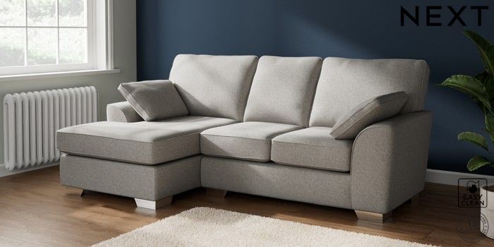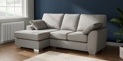 7.3.1 Buy Stamford Small Sofa Chaise - Left Hand Woven Chenille Easy Clean Light Grey Large Square Angle - Chrome Metal from the Seasons online shop Click here to use our website with more accessibility support, for example screen readers