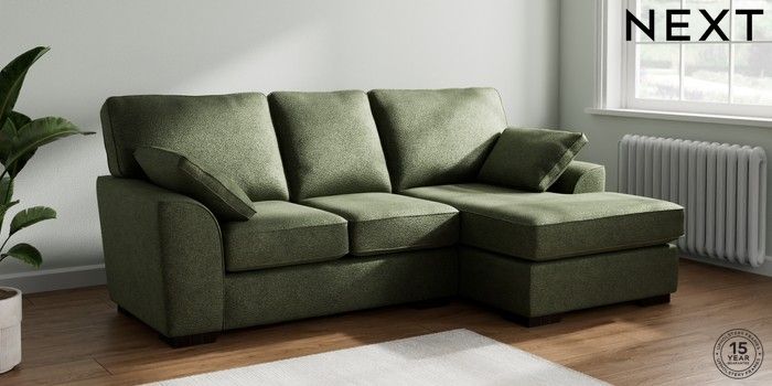 7.3.1 Buy Stamford Small Sofa Chaise - Right Hand Boucle Chenille Dark Moss Green Large Square Angle - Dark from the Seasons online shop Click here to use our website with more accessibility support, for example screen readers