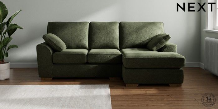 7.3.1 Buy Stamford Small Sofa Chaise - Right Hand Boucle Chenille Dark Moss Green Large Square Angle - Mid from the Seasons online shop Click here to use our website with more accessibility support, for example screen readers