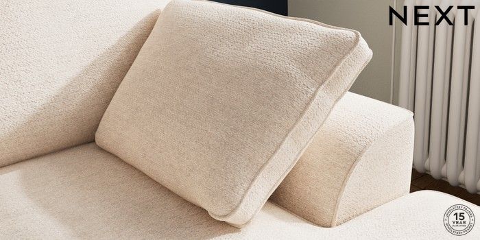 7.2.10 Buy Stamford Small Sofa Chaise - Right Hand Boucle Chenille Oyster Large Square Angle - Mid from the Seasons online shop Click here to use our website with more accessibility support, for example screen readers