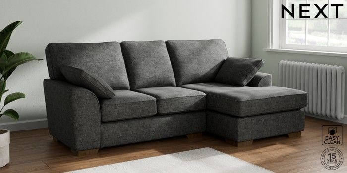7.3.1 Buy Stamford Small Sofa Chaise - Right Hand Boucle Weave Easy Clean Charcoal Grey Large Square Angle - Mid from the Seasons online shop Click here to use our website with more accessibility support, for example screen readers