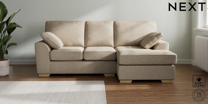 7.3.1 Buy Stamford Small Sofa Chaise - Right Hand Boucle Weave Easy Clean Dark Natural Large Square Angle - Light from the Seasons online shop Click here to use our website with more accessibility support, for example screen readers
