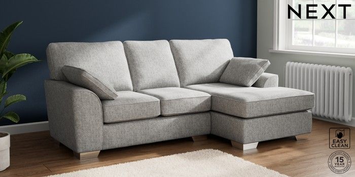 7.3.1 Buy Stamford Small Sofa Chaise - Right Hand Chunky Boucle Easy Clean Light Grey Large Square Angle - Chrome Metal from the Seasons online shop Click here to use our website with more accessibility support, for example screen readers