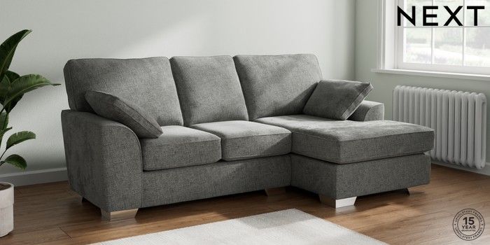 7.3.1 Buy Stamford Small Sofa Chaise - Right Hand Chunky Chenille Dark Grey Large Square Angle - Chrome Metal from the Seasons online shop Click here to use our website with more accessibility support, for example screen readers