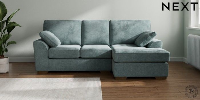 7.2.10 Buy Stamford Small Sofa Chaise - Right Hand Chunky Chenille Light Teal Green Large Square Angle - Mid from the Seasons online shop Click here to use our website with more accessibility support, for example screen readers
