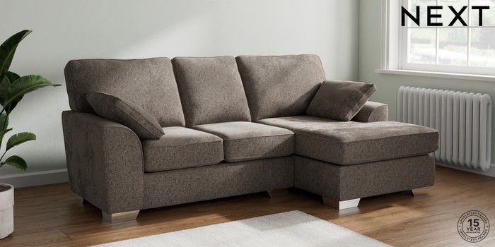 7.3.1 Buy Stamford Small Sofa Chaise - Right Hand Chunky Chenille Mink Brown Large Square Angle - Chrome Metal from the Seasons online shop Click here to use our website with more accessibility support, for example screen readers