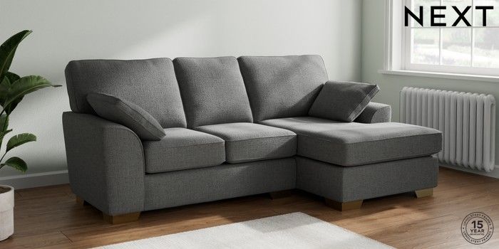 7.2.10 Buy Stamford Small Sofa Chaise - Right Hand Chunky Texture Dark Grey Large Square Angle - Brushed Brass from the Seasons online shop Click here to use our website with more accessibility support, for example screen readers