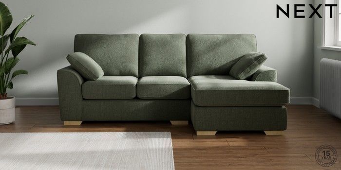 7.2.10 Buy Stamford Small Sofa Chaise - Right Hand Chunky Texture Mid Forest Green Large Square Angle - Light from the Seasons online shop Click here to use our website with more accessibility support, for example screen readers