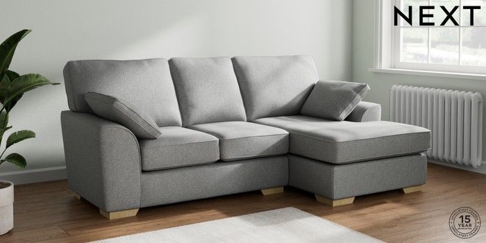 7.2.10 Buy Stamford Small Sofa Chaise - Right Hand Chunky Weave Mid Grey Large Square Angle - Light from the Seasons online shop Click here to use our website with more accessibility support, for example screen readers