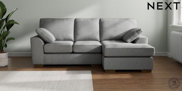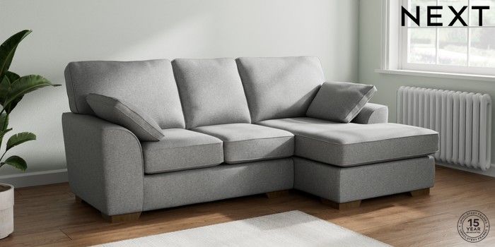 7.2.10 Buy Stamford Small Sofa Chaise - Right Hand Chunky Weave Mid Grey Large Square Angle - Mid from the Seasons online shop Click here to use our website with more accessibility support, for example screen readers