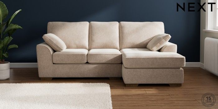 7.2.10 Buy Stamford Small Sofa Chaise - Right Hand Cotswold Chenille Light Natural Large Square Angle - Mid from the Seasons online shop Click here to use our website with more accessibility support, for example screen readers