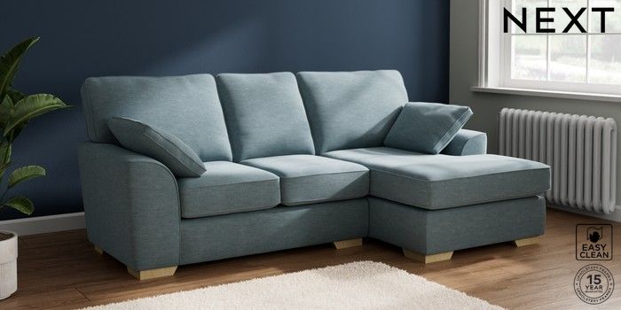 7.2.10 Buy Stamford Small Sofa Chaise - Right Hand Fine Chenille Easy Clean Mid Blue Large Square Angle - Light from the Seasons online shop Click here to use our website with more accessibility support, for example screen readers