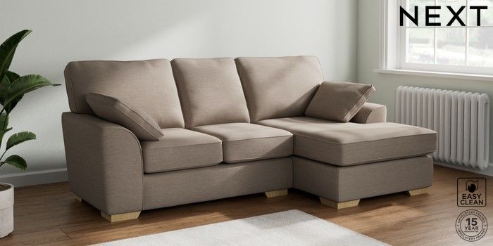7.3.1 Buy Stamford Small Sofa Chaise - Right Hand Fine Chenille Easy Clean Mid Taupe Brown Large Square Angle - Light from the Seasons online shop Click here to use our website with more accessibility support, for example screen readers