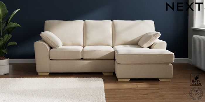 7.2.10 Buy Stamford Small Sofa Chaise - Right Hand Fine Chenille Easy Clean Oyster Large Square Angle - Light from the Seasons online shop Click here to use our website with more accessibility support, for example screen readers