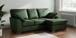 7.3.1 Buy Stamford Small Sofa Chaise - Right Hand Luxe Chenille Dark Green Large Square Angle - Gunmetal from the Seasons online shop Click here to use our website with more accessibility support, for example screen readers