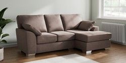 7.3.1 Buy Stamford Small Sofa Chaise - Right Hand Luxe Chenille Mink Brown Large Square Angle - Chrome Metal from the Seasons online shop Click here to use our website with more accessibility support, for example screen readers