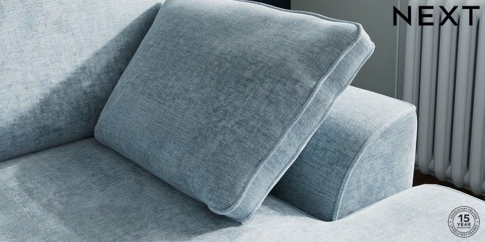 7.2.10 Buy Stamford Small Sofa Chaise - Right Hand Plush Chenille Light Blue Large Square Angle - Chrome Metal from the Seasons online shop Click here to use our website with more accessibility support, for example screen readers