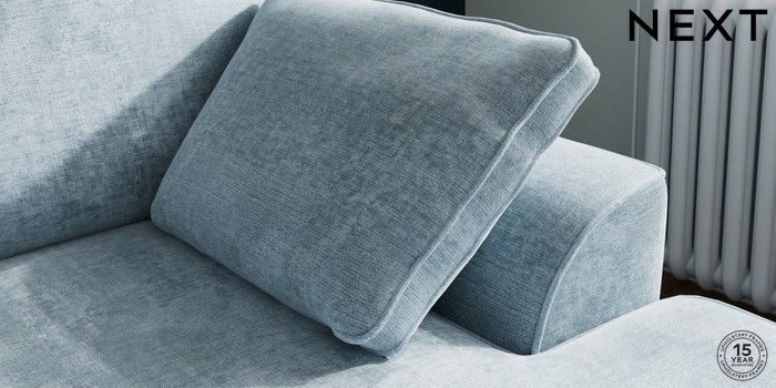 7.3.1 Buy Stamford Small Sofa Chaise - Right Hand Plush Chenille Light Blue Large Square Angle - Gunmetal from the Seasons online shop Click here to use our website with more accessibility support, for example screen readers