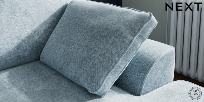7.2.10 Buy Stamford Small Sofa Chaise - Right Hand Plush Chenille Light Blue Large Square Angle - Mid from the Seasons online shop Click here to use our website with more accessibility support, for example screen readers