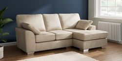 7.3.1 Buy Stamford Small Sofa Chaise - Right Hand Plush Chenille Light Natural Large Square Angle - Chrome Metal from the Seasons online shop Click here to use our website with more accessibility support, for example screen readers