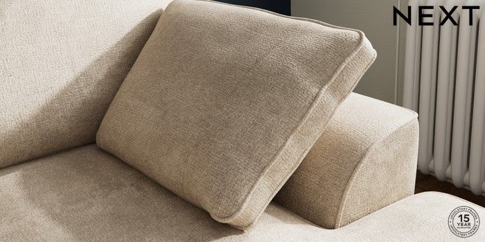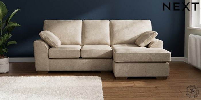 7.2.10 Buy Stamford Small Sofa Chaise - Right Hand Plush Chenille Light Natural Large Square Angle - Mid from the Seasons online shop Click here to use our website with more accessibility support, for example screen readers