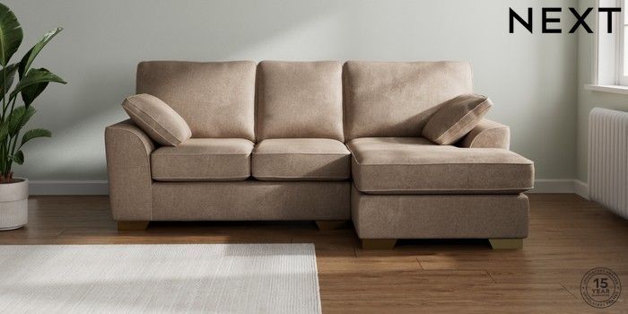 7.2.10 Buy Stamford Small Sofa Chaise - Right Hand Plush Chenille Mid Natural Large Square Angle - Brushed Brass from the Seasons online shop Click here to use our website with more accessibility support, for example screen readers