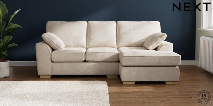7.2.10 Buy Stamford Small Sofa Chaise - Right Hand Plush Chenille Oyster Large Square Angle - Light from the Seasons online shop Click here to use our website with more accessibility support, for example screen readers
