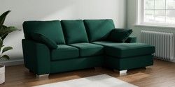 7.3.1 Buy Stamford Small Sofa Chaise - Right Hand Plush Velvet Easy Clean Bottle Green Large Square Angle - Chrome Metal from the Seasons online shop Click here to use our website with more accessibility support, for example screen readers