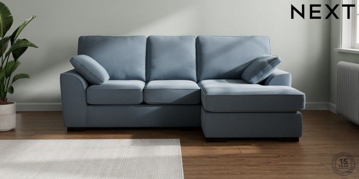 7.3.1 Buy Stamford Small Sofa Chaise - Right Hand Relaxed Linen Look Mid Blue Large Square Angle - Dark from the Seasons online shop Click here to use our website with more accessibility support, for example screen readers