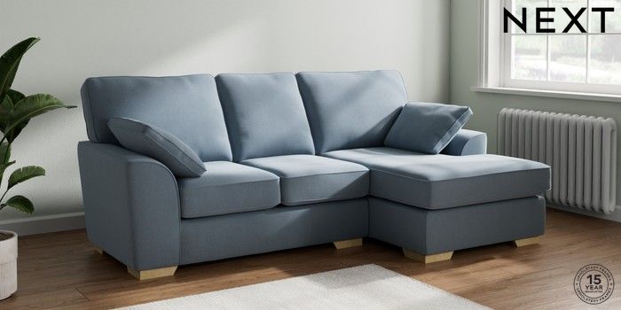7.2.10 Buy Stamford Small Sofa Chaise - Right Hand Relaxed Linen Look Mid Blue Large Square Angle - Light from the Seasons online shop Click here to use our website with more accessibility support, for example screen readers