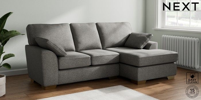 7.3.1 Buy Stamford Small Sofa Chaise - Right Hand Tweedy Blend Easy Clean Dark Grey Large Square Angle - Brushed Brass from the Seasons online shop Click here to use our website with more accessibility support, for example screen readers