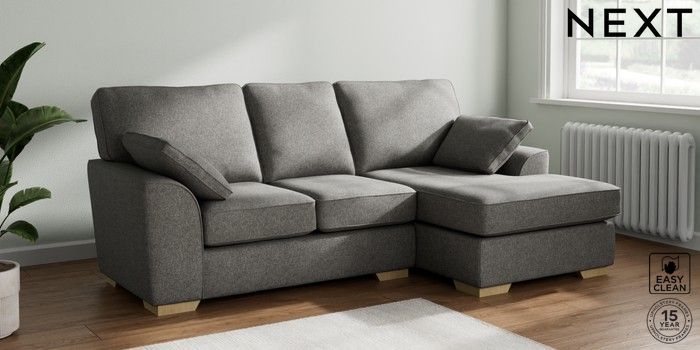 7.3.1 Buy Stamford Small Sofa Chaise - Right Hand Tweedy Blend Easy Clean Dark Grey Large Square Angle - Light from the Seasons online shop Click here to use our website with more accessibility support, for example screen readers