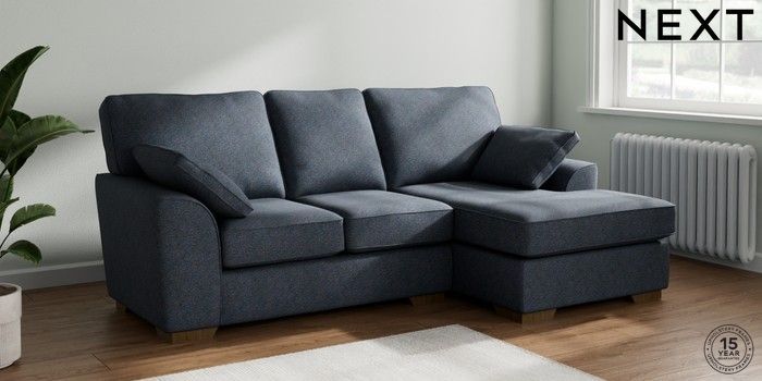7.3.1 Buy Stamford Small Sofa Chaise - Right Hand Tweedy Chenille Navy Blue Large Square Angle - Mid from the Seasons online shop Click here to use our website with more accessibility support, for example screen readers
