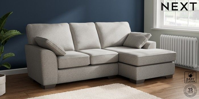 7.3.1 Buy Stamford Small Sofa Chaise - Right Hand Woven Chenille Easy Clean Light Grey Large Square Angle - Gunmetal from the Seasons online shop Click here to use our website with more accessibility support, for example screen readers