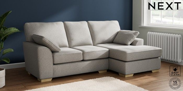 7.2.10 Buy Stamford Small Sofa Chaise - Right Hand Woven Chenille Easy Clean Light Grey Large Square Angle - Light from the Seasons online shop Click here to use our website with more accessibility support, for example screen readers