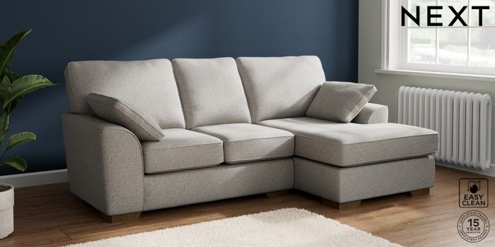 7.2.10 Buy Stamford Small Sofa Chaise - Right Hand Woven Chenille Easy Clean Light Grey Large Square Angle - Mid from the Seasons online shop Click here to use our website with more accessibility support, for example screen readers