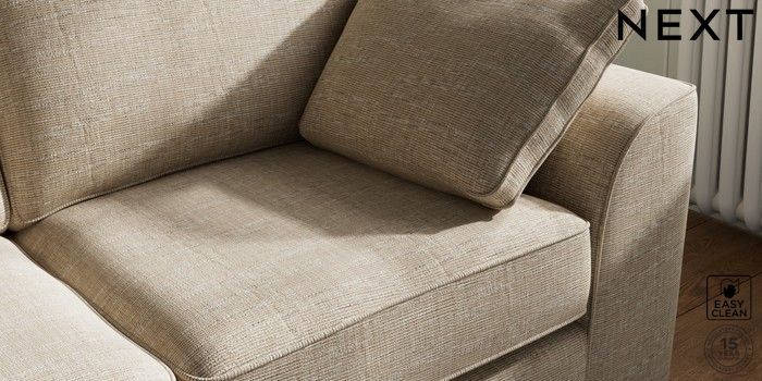 A chunky, hardwearing fabric with a timeless look which can tackle most household stains by blotting or gently wiping the fabric with water and a mild detergent. This Fabric is covered by the Quality Fabric Kitemark