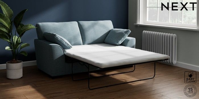 7.2.10 Buy Stamford Sofa Bed Fine Chenille Easy Clean Mid Blue Large Square Angle - Dark from the Seasons online shop Click here to use our website with more accessibility support, for example screen readers