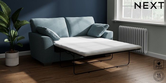 7.2.10 Buy Stamford Sofa Bed Fine Chenille Easy Clean Mid Blue Large Square Angle - Gunmetal from the Seasons online shop Click here to use our website with more accessibility support, for example screen readers