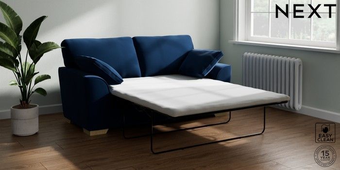 7.2.10 Buy Stamford Sofa Bed Plush Velvet Easy Clean Navy Blue Large Square Angle - Light from the Seasons online shop Click here to use our website with more accessibility support, for example screen readers