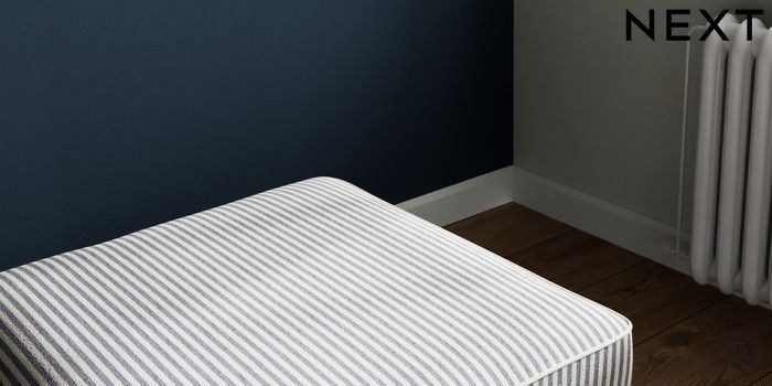 7.3.1 Buy Stamford Storage Footstool Chenille Stripe Slate Blue Square Angle - Mid from the Seasons online shop Click here to use our website with more accessibility support, for example screen readers