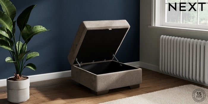 7.2.10 Buy Stamford Storage Footstool Chunky Chenille Light Dove Square Angle - Gunmetal from the Seasons online shop Click here to use our website with more accessibility support, for example screen readers