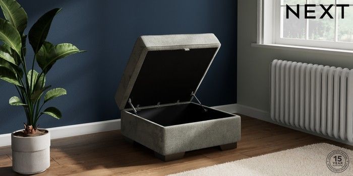 7.2.10 Buy Stamford Storage Footstool Chunky Chenille Light Grey Square Angle - Gunmetal from the Seasons online shop Click here to use our website with more accessibility support, for example screen readers