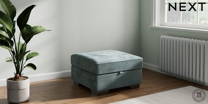 7.3.1 Buy Stamford Storage Footstool Chunky Chenille Light Teal Green Square Angle - Gunmetal from the Seasons online shop Click here to use our website with more accessibility support, for example screen readers