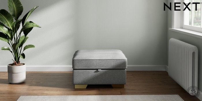 7.2.10 Buy Stamford Storage Footstool Chunky Weave Mid Grey Square Angle - Brushed Brass from the Seasons online shop Click here to use our website with more accessibility support, for example screen readers