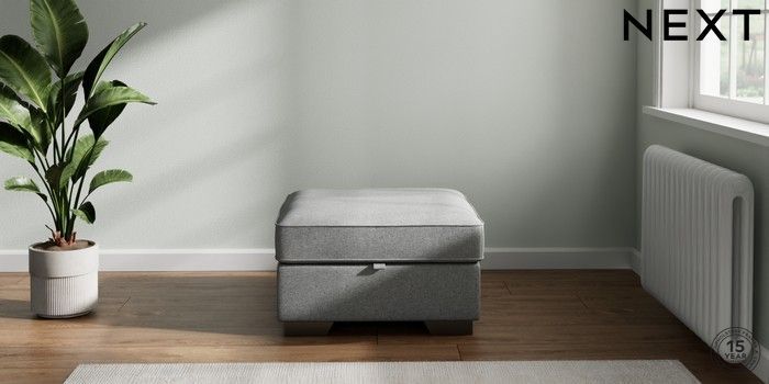 7.2.10 Buy Stamford Storage Footstool Chunky Weave Mid Grey Square Angle - Gunmetal from the Seasons online shop Click here to use our website with more accessibility support, for example screen readers